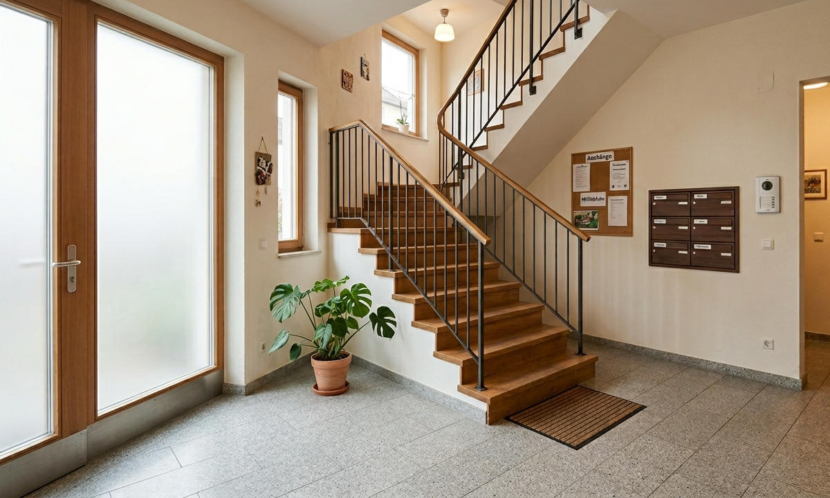 Bitte achten Sie darauf, dass Treppenhaus, Hausflure, Podeste und Eingangsbereiche frei, sicher und gut begehbar bleiben. Diese Flächen sind Gemeinschaftsflächen und dienen allen Bewohnerinnen und Bewohnern als Zugang zu den Wohnungen – im Alltag und besonders auch im Notfall.